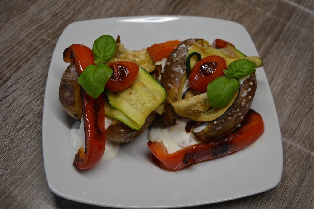 Ofenkartoffel mit hausgemachtem Sauerrahm und Grillgemüse